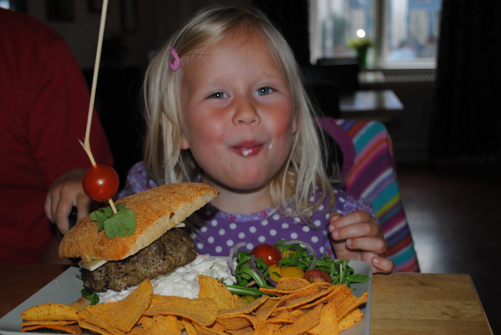 Alma ville ha burgare, och den fanns endast i vuxenportion!!